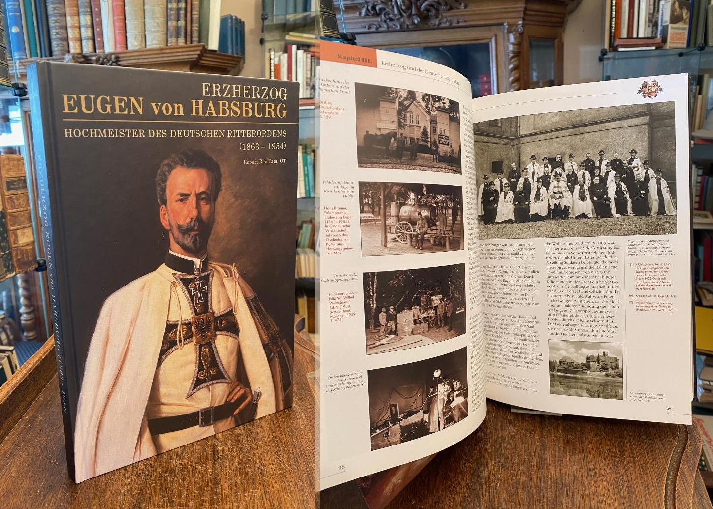 Eugen von Österreich-Teschen (1863-1954). – Rac, Robert : Fam. OT (ed): Erzherzog Eugen von Habsburg (1863-1954) : Hochmeister des Deutschen Ritterordens. 1. Aufl., Eulenburg, Esmedia, 2005. 4° (30x22), 201 S., mit zahlr. dokumentarischen Aufnahmen, graph. Darst., Abb., ill OPbd, nahezu ungelesen, schönes gepflegtes Exemplar, Herausgegeben anlässlich der fünfzigjährigen Wiederkehr des Sterbetages des Erzherzogs Eugen von Habsburg, des Hochmeisters von Deutschem Ritterorden.–