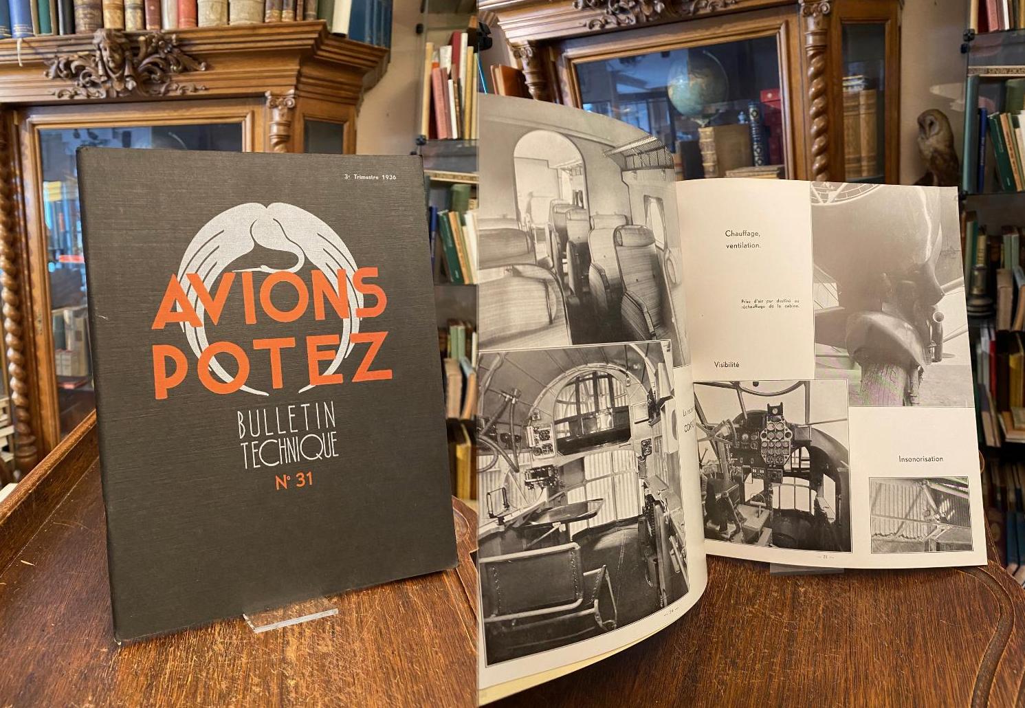 Potez, Henry: L’Avion Potez : Bulletin Technique No. 31 : 3e trimestre 1936. Paris, Potez / Editions Roche d’Estrez, 1936. 4° (28x22), 48p., avec res nombreuses photos et illustrations, et 8 planches hors texte (Potez 54, 63, 62, 56, 60, 58, 453, 452), reliure d’editeur souple, tres bon,