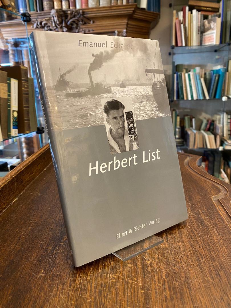 List, Herbert (1903-1975). – Eckardt, Emanuel: Herbert List. Mit einem Vowort von Helmut Schmidt. Hamburg, Ellert & Richter Verlag, 2003. 8° (22x15), 144 S., mit zahlr. fotograf Aufnahmen, Oln mit fotoill OU, im Schnitt etwas gebräunt, sonst nahezu ungelesen, schönes gepflegtes Exemplar, [= Hamburger Köpfe : herausgegebenvon der ZEIT-Stiftung Ebelin und Gerd Bucerius], gilt als ‚moderner Klassiker‘ und wurde vor allem für seine surreal anmutenden Schwarzweiß-Fotografien bekannt.–
