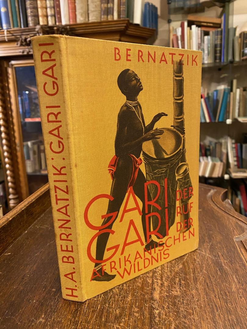 Bernatzik, Hugo Adolf: Gari Gari : Leben und Abenteuer bei den Negern zwischen Nil und Kongo. 3., verbesserte Aufl., Wien, Verlag von L.W. Seidel & Sohn, (1930). 8° (23x15), 144 S., mit 156 fotograf Aufnahmen auf Tafeln, 1 eingefaltete Karte, ill Oln, Einband gering stockfleckig, Schnitt etwas begriffen, gutes gepflegtes Exemplar, [Kainbacher 2002/3ed, S. 41 Bernatzik 4].– Einbandillustration von Robert Haas.–