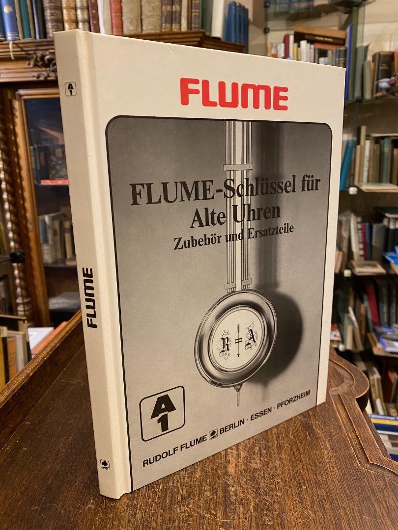 Flume, Rudolf: Flume-Schlüssel für Alte Uhren : A1 : Zubehör und Ersatzteile: Werkteile für Kleinuhren, Gehäuseteile für Kleinuhren, Werkteile für Großuhren, Gehäuseteile für Großuhren, Zubehöre für Klein- und Großuhren, Werkzeuge und Geräte. Berlin; Essen; Pforzheim, Rudolf Flume, [1983]. 4° (30x21), 114 S., reich illustriert, Beilage: Preisliste 1. Januar 1984, OPbd, leicht gebräunt, fest sauber und gepflegt, [= Flume-System; A1],
