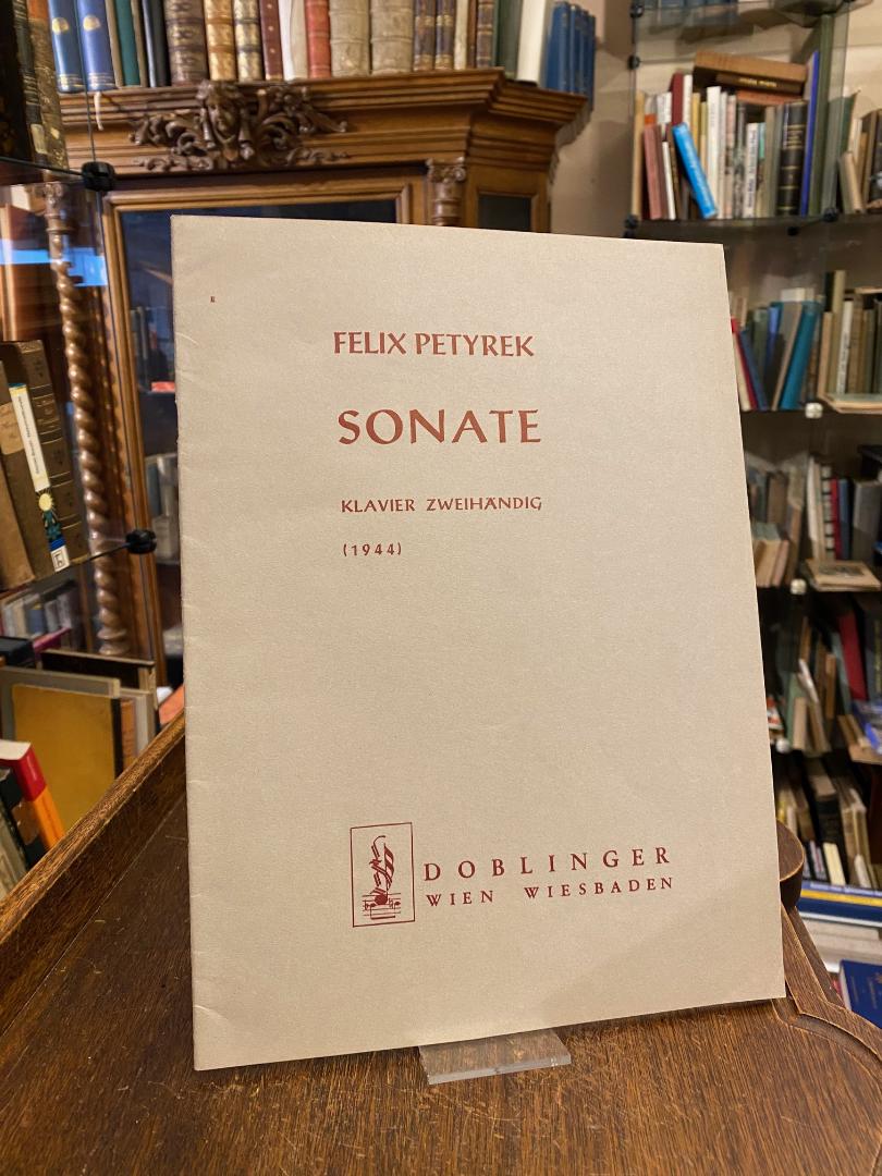 Petyrek, Felix (1892-1951): Sonate : Klavier zweihändig (1944) : (Ihrer Hoheit, Frau Herzogin Maria von Württemberg). Wien; Wiesbaden, Ludwig Doblinger (Bernhard Herzmansky), (V-Nr. 9128) (1956). 4° (31x23), 20 S., OKart (Brosch) mit Titeldruck, fest sauber und gepflegt,