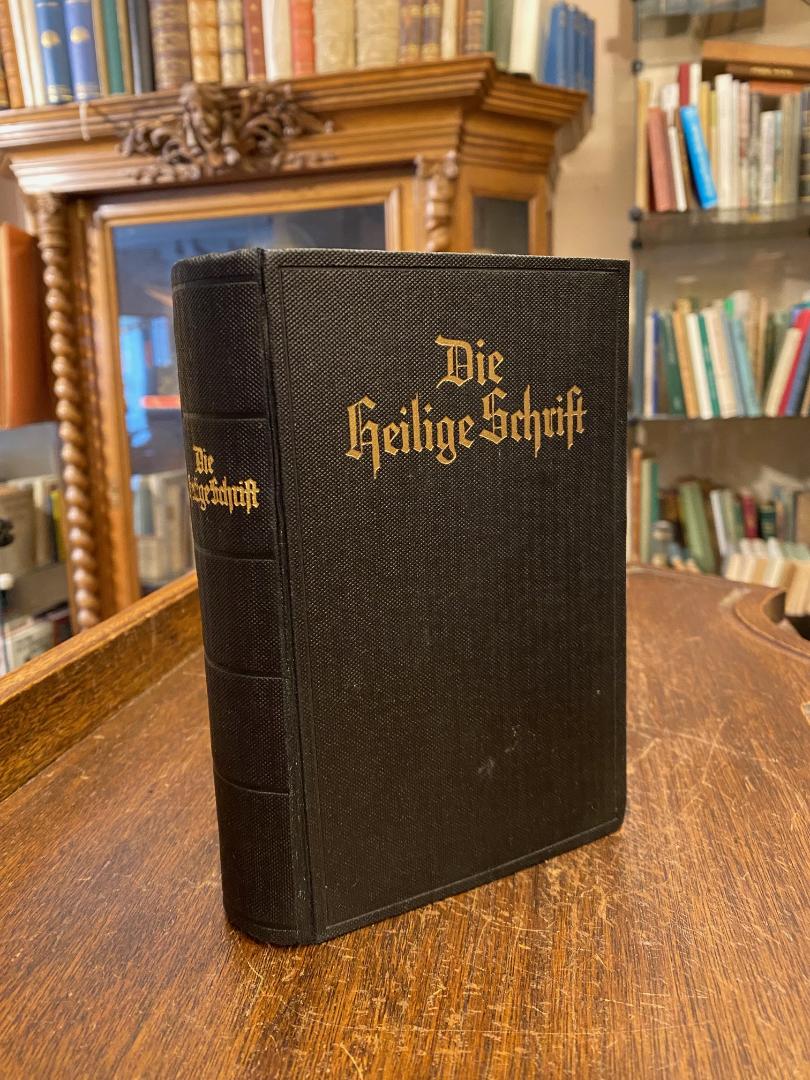 Bibel. – AT. – NT. – Luther, Martin (Üb): Die Bibel, oder die ganze Heilige Schrift des Alten und Neuen Testaments nach der deutschen Übersetzung D. Martin Luthers : TASCHEN-AUSGABE. Neu durchgesehen nach dem vom Deutschen Evangelischen Kirchenausschuß genehmigten Text. Stuttgart, Privilegierte Württembergische Bibelanstalt, 1935. kl8° (17x11), 896 (AT), 297 (NT), 84 (Anhang) S., + 6 Kartenseiten und 16 fotograf Aufnahmen auf Tafeln, schwarzer Oln mit goldTitelPrägung auf Deckel und Rücken, dreiseitiger FarbSchnitt, Vorsatz etwas braunfleckig, sonst schönes gepflegtes Exemplar, (Taschenausgabe).–
