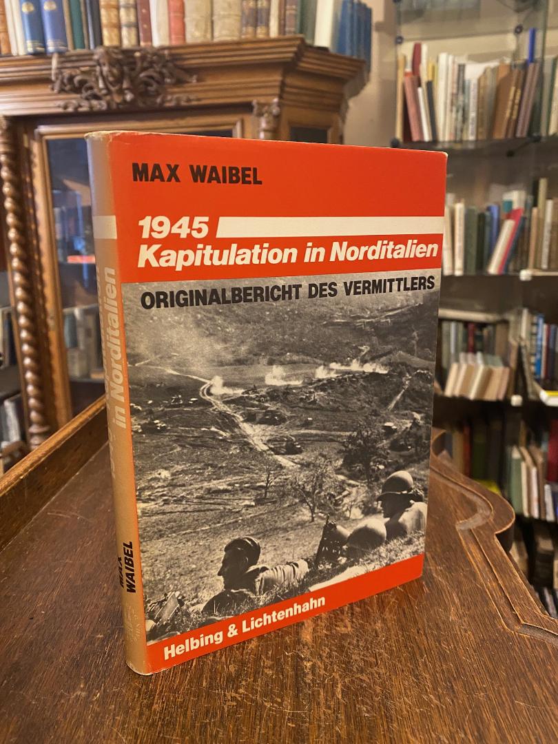Waibel, Max: 1945 – Kapitulation in Norditalien : Originalbericht des Vermittlers. Mit einem Kommentar von Hans Rudolf Kurz. Herausgegeben von Eduard Preiswerk, Alfons Burckhardt und Georg Kreis. Basel und Frankfurt/M, Helbing & Lichtenhahn Verlag, (1981). 8° (23x16), 184 S., mit 32 fotograf Aufnahmen, Oln mit fotoill OU, Umschlagrücken aufgehellt, sonst nahezu ungelesen, schönes gepflegtes Exemplar,