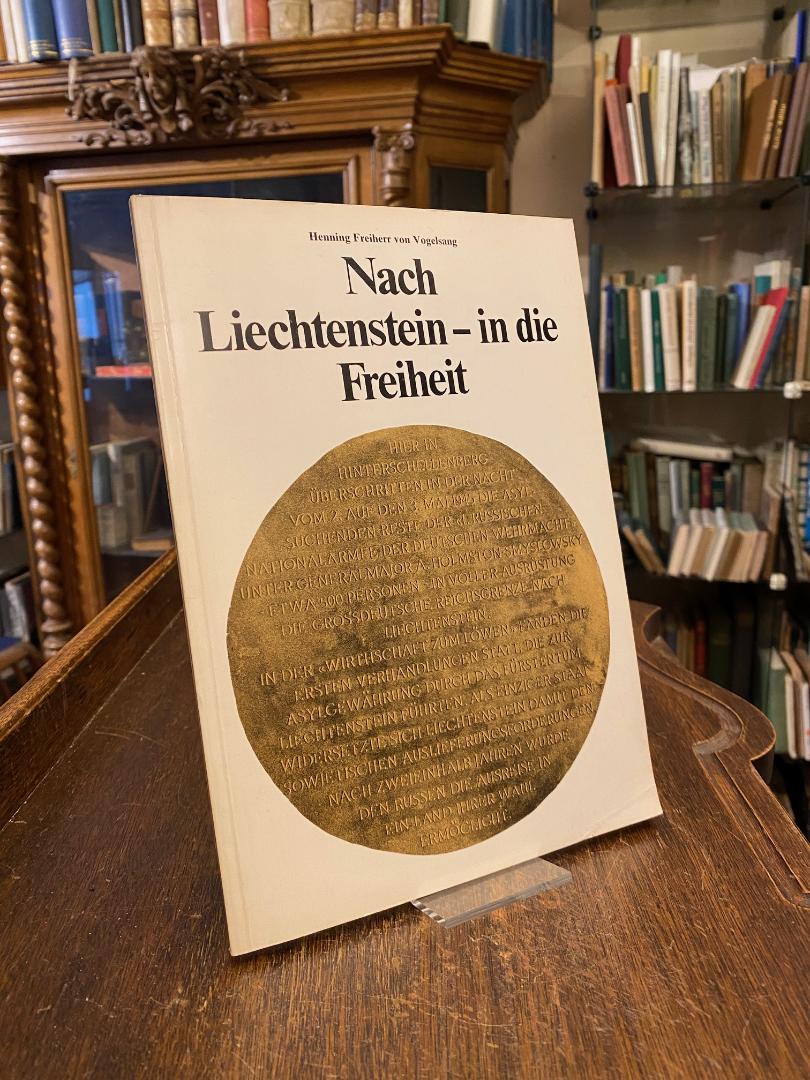 Vogelsang, Henning Freiherr von: Nach Liechtenstein – in die Freiheit : Der abenteuerliche Weg der ‚1. Russischen Nationalarmee der Deutschen Wehrmacht‘ ins Asyl im Fürstentum Liechtenstein. Herausgegeben von der Gemeinde Schellenberg aus Anlass des 35. Jahrestages des übertritts der Truppe Generla Holmstons nach Liechtenstein. 1. Aufl., Triesen, Henning Frhr. v. Vogelsang, 1980. gr8° (24x17), 63 S., mit zahlr. fotograf Aufnahmen und Faksimiles, OKart (Brosch), vorderseitig schwacher Eckknick, Papier etwas gebräunt, fest sauber und gepflegt, Der Rest einer nationalrussischen Armee, Teil der hitlerdeutschen Wehrmacht, flüchtet 1945 bei Kriegsende nach Liechtenstein.–