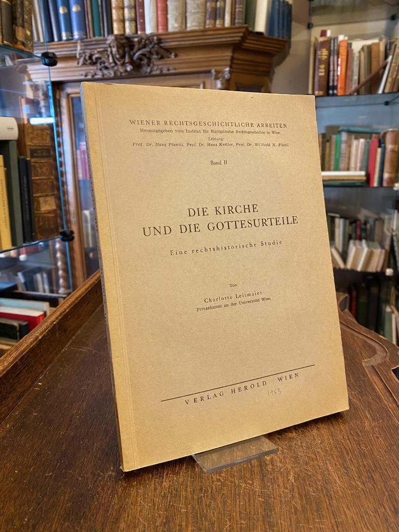 Leitmaier, Charlotte: Die Kirche und die Gottesurteile : Eine rechtshistorische Studie. Wien, Verlag Herold, 1953. gr8° (24x17), 139 S., OKart (Brosch), sauber und wohlerhalten, [= Wiener rechtsgeschichtliche Arbeiten; 2 : herausgegeben vom Institut für Europäische Rechtsgeschichte in Wien],