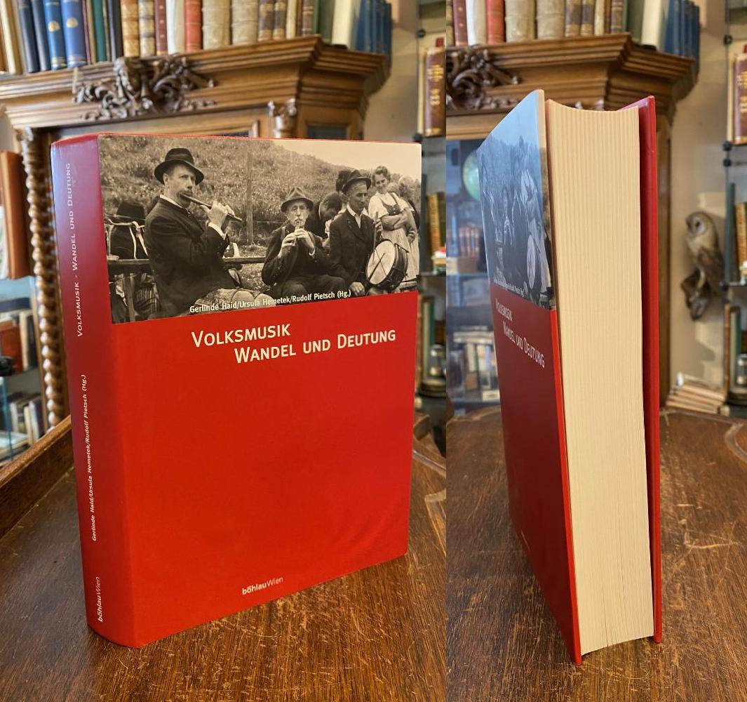 Haid, Gelinde / Hemetek, Ursula / Pietsch, Rudolf (Hrsg): Volksmusik – Wandel und Deutung : Festschrift Walter Deutsch zum 75. Geburtstag : (mit CD und englischen Zusammenfassungen). Wien; Köln; Weimar, Böhlau Verlag, 2000. 4° (25x18), 630 S., mit zahlr. Abb. und Notenbeispielen, 1 CD im Rückendeckel, Oln mit ill OU, Deckel an der unteren Ecken mit kleiner Feuchtigkeitsspur (dort Umschlag leicht gewellt), aber nicht eingedrungen, sonst nahezu ungelesen, gutes und frisches Exemplar, [= Schriften zur Volksmusik; 19 : Veröffentlichungen des Instituts für Volksmusikforschung an der Universität für Musik und darstellende Kunst Wien – gegründet von Walter Deutsch, gleitet von Gerlinde Haid],
