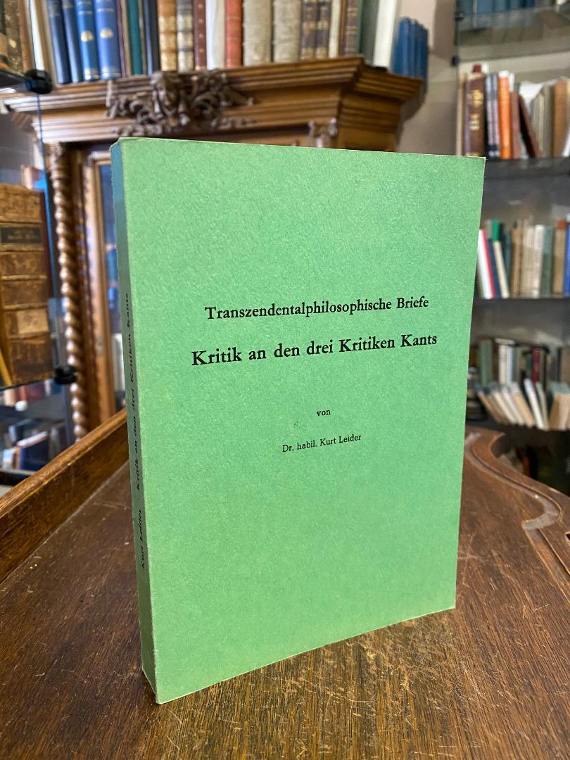 Leider, Kurt: Transzendentalphilosophische Briefe : Kritik an den drei Kritiken Kants. Hamburg, Drei Eulen Verlag, 1977. 8° (21x15), (XI), 360 S., 1 Bl., mit 6 Tafeln, OKart (Brosch), sauber und wohlerhalten, [= Schriftenreihe der Philosophischen Akademie zu Lübeck],