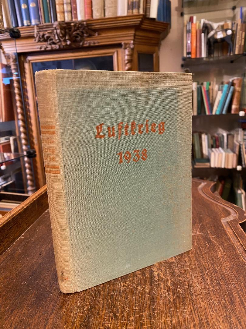 Helders, Major [d. i. Knauss, Robert]: Luftkrieg 1938. Berlin, Traditions-Verlag Kolk & Co, (1934). 8° (21x15), 148 S., 1 Bl., mit 4 Kartenskizzen auf gefalteter Tafel, grüner Oln mit roter TitelPrägung, Einband licht- und etwas staubrandig, innen sauber und wohlerhalten, Kriegsutopie.–