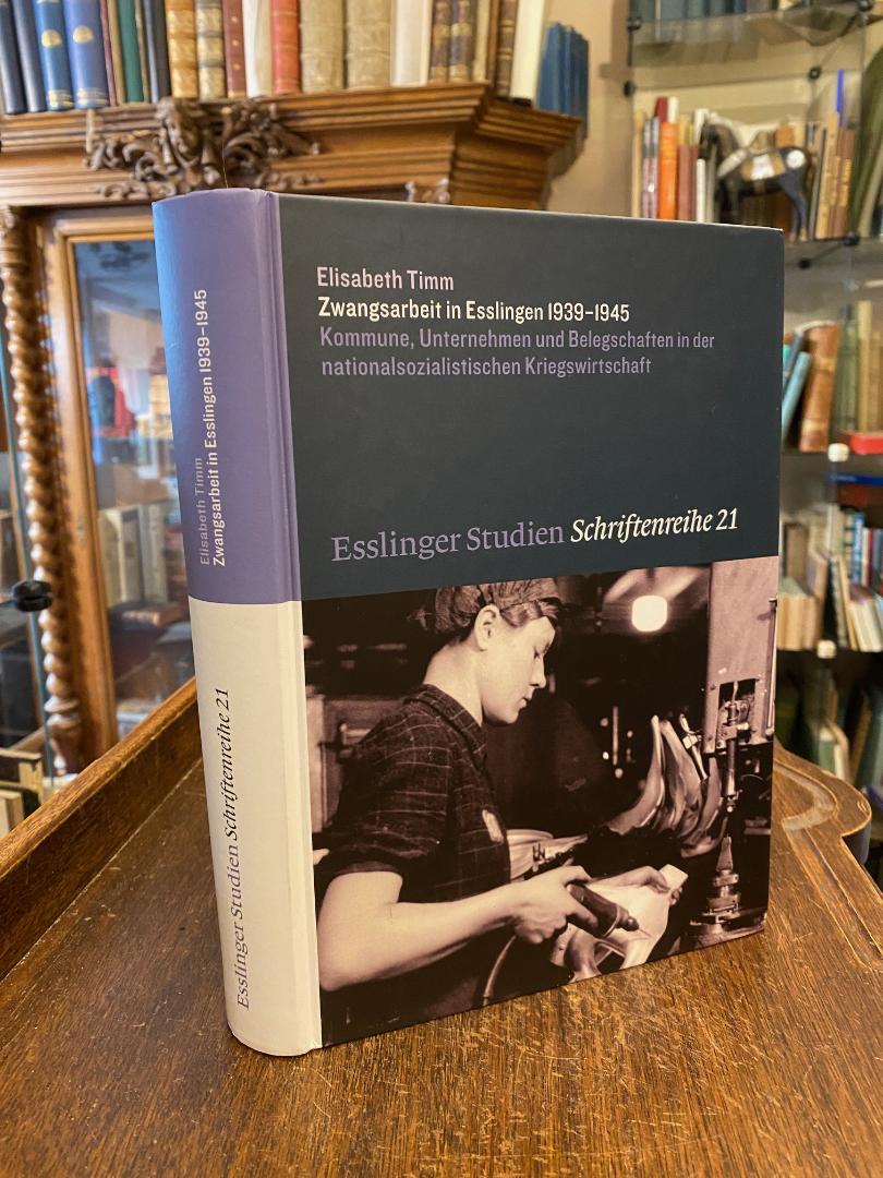 Esslingen. – Timm, Elisabeth: Zwangsarbeit in Esslingen 1939 – 1945 : Kommune, Unternehmen und Belegschaftenin der nationalsozialistischen Kriegswirtschaft. Sigmaringen, Jan Thorbecke Verlag, (2008). 4° (25x17), 461 S., mit Abb. im Text, sowie Farbtafeln, fotoill OPbd, kleiner Archivstempel auf Innenspiegel, sonst ohne Gebrauchsspuren, offensichtlich ungelesen, [= Esslinger Studien – Schriftenreihe; 21 : herausgegeben vom Stadtarchiv Esslingen am Neckar : Schriftleitung: Joachim J. Halbekann],