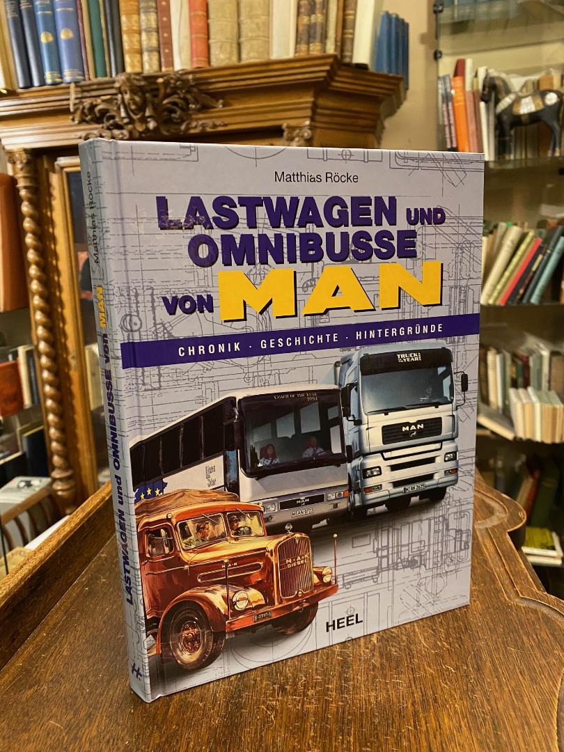 Röcke, Martin: Lastwagen und Omnibusse von MAN : Chronik – Geschichte – Hintergründe. Königswinter, Heel Verlag, (2001). 4° (27x20), 199 S.., mit zahlr. historischen sowie farb fotograf Aufnahmen, graph. Darst., Faksimiles, fotoill OPbd, ohne Gebrauchsspuren, offensichtlich ungelesen, frisch,