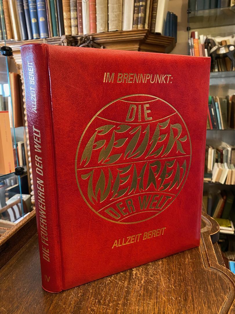 Fontana, Olivio (Foto) / Gihl, Manfred / Ladwig, Benno / Neck, Jürg (Red): Im Brennpunkt: Die Feuerwehren der Welt : Band 4: Allzeit bereit. [Baar], Weltrundschau Verlag, (1983). 4° (30x23), 287 S., mit zahlr. fotograf Aufnahmen, roter wattierter OKldr mit goldPrägung, Kopfschnitt etwas angestaubt, nahezu ungelesen, schönes gepflegtes Exemplar,