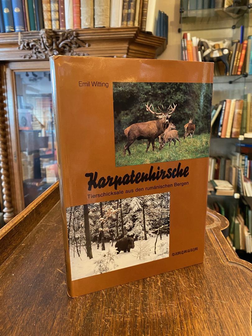 Witting, Emil: Karpatenhirsche : Tierschicksale aus den rumänischen Bergen. Mülheim, Verlag Okahandja : H.-J. Michel, (1981). 4° (25x14), 192 S., mit 37 farb fotograf Tafeln, OPbd mit fotoill OU, Umschlagrücken leicht aufgehellt, nahezu ungelesen, schönes gepflegtes Exemplar,