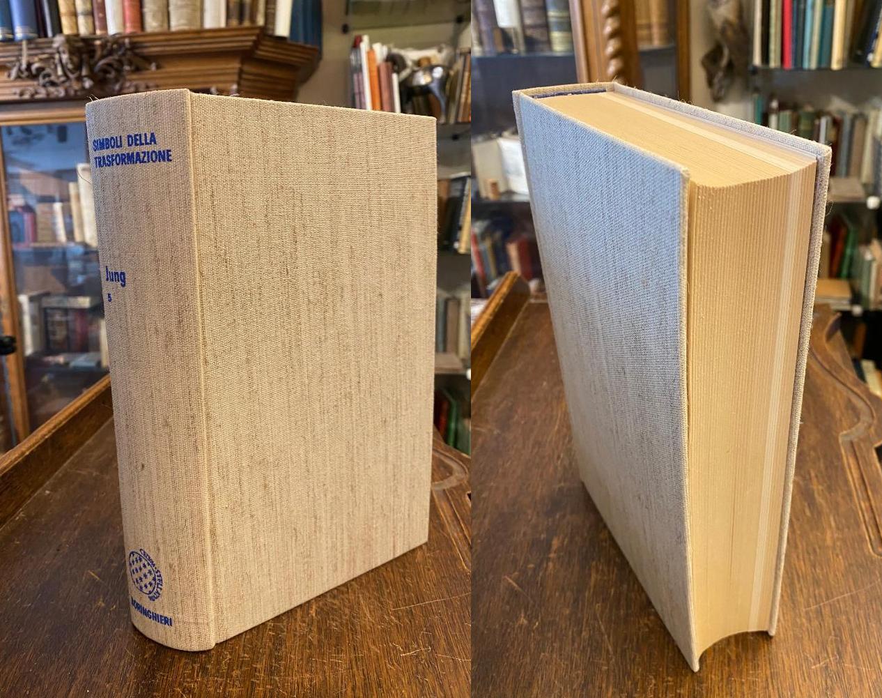 Jung, Carl Gustav. – Opere di C. G. Jung : Vol 5: Simboli della Trasformazione : Analisi del Prodromi di un Caso di Schizofrenia. vol 5 (da 19), Torino, Editore Boringhieri, 1980. 4° (25x16), 595 p,, con 42 illustrationi di testo et 44 tavole su carta artistica, legatura editore in tela con dorso in rilievo blu, senza sovracoverta, leggermente ingiallita, con occasionali segni a matita, buona copia, [= C.G. Jung : opere in 19 volumi; vol 5],