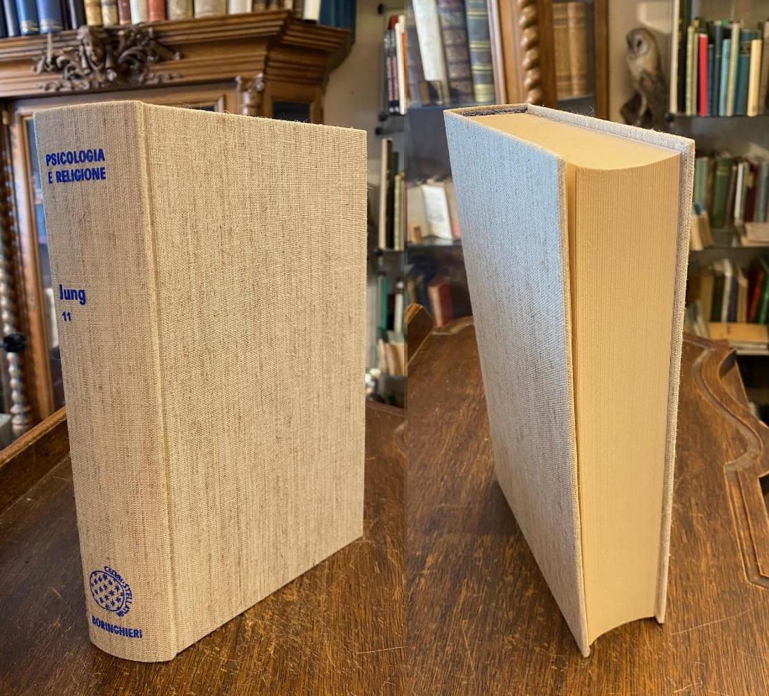 Jung, Carl Gustav (1875-1961). – Opere di C. G. Jung : Vol 11: Psicologia e Religione. vol 11 (da 19), Torino, Editore Boringhieri, 1981. 4° (25x16), 675 p, legatura editore in tela con dorso in rilievo blu, senza sovracoverta, leggermente ingiallita, buona copia, [= C.G. Jung : opere in 19 volumi; vol 11],