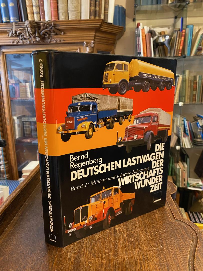Regenberg, Bernd: Die Deutschen Lastwagen der Wirtschaftswunderzeit : Band 2: Mittlere und schwere Fahrzeuge 2., unveränderte Aufl., Brilon, Verlag Podszun Motorbücher, (1986) Folgeauflage 1987. 4° (29x22), 319 S., mit zahlr. fotograf Aufnahmen und graph. Darst., Tab., Oln mit fotoill OU, ohne Gebrauchsspuren, wohl ungelesen, frisch,