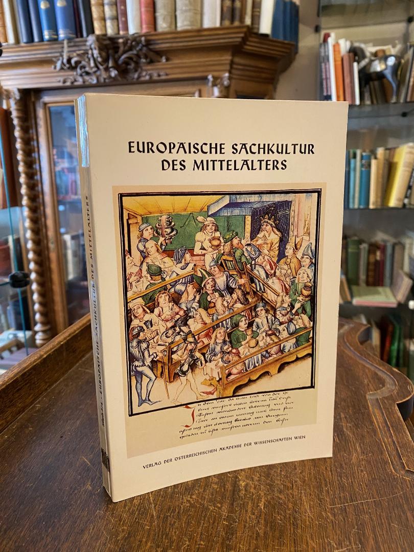 Mayrhofer, Manfred (Red): Europäische Sachkultur des Mittelalters : Gedenkschrift aus Anlass des zehnjährigen Bestehens des Instituts für mittelalterliche Realienkunde Österreichs. Wien, Verlag der Österreichischen Akademie der Wissenschaften, 1980. gr8° (24x15), 232 S., mit 39 Abb. auf Tafeln, ill OKart (Brosch), ohne Gebrauchsspuren, wohl ungelesen, [= Veröffentlichungen des Instituts für Mittelalterliche Realienkunde Österreichs; 4 ; zgl. Österreichische Akademie der Wissenschaften : Philosophisch-Historische Klasse; Sitzungsberichte; 374] enthält: I. HEINRICH APPELT: Mittelalterliche Realienkunde Österreichs als Forschungsaufgabe.– II. FLORENS DEUCHLER: Siena und Jerusalem : Imagination und Realität in Duccios neuem Stadtbild.– III. HORST FUHRMANN: Der Adamsapfel oder die Wirklichkeit im Bild.– IV. HELMUT HUNDSBICHLER: Der Beitrag deskriptiver Quellenbelege des 15. Jahrhunderts zur Kenntnis der spätgotischen Stube in Österreich.– V. GERHARD JARITZ: Seelenheil und Sachkultur : Gedanken zur Beziehung Mensch – Objekt im späten Mittelalter.– VI. HARRY KÜHNEL: Abbild und Sinnbild in der Malerei des Spätmittelalters.– VII. JACQUES LE GOFF: Réalités sociales et codes idéologiques au debut du XIIIe siècle : Un exemplum de Jacques de Vitry sur les tournois.– VIII. J. G. N. RENAUD: Mittelalterliche Realienkunde in den Niederlanden.– IX. KARL RUDOLF: Realienkunde und spätmittelalterliche Brief- und Formularsammlungen.– X. LEOPOLD SCHMIDT: ‚Sankt Joseph kocht ein Müselein‘ : Zur Kindbreiszene in der Weihnachtskunst des Mittelalters.– XI. MANFRED THALLER: Descriptor : Probleme der Entwicklung eines Programmsystems zur computerunterstützten Auswertung mittelalterlicher Bildquellen.– XII. ELISABETH VAVRA: Kunstwerke als Quellenmaterial der Sachkulturforschung.–