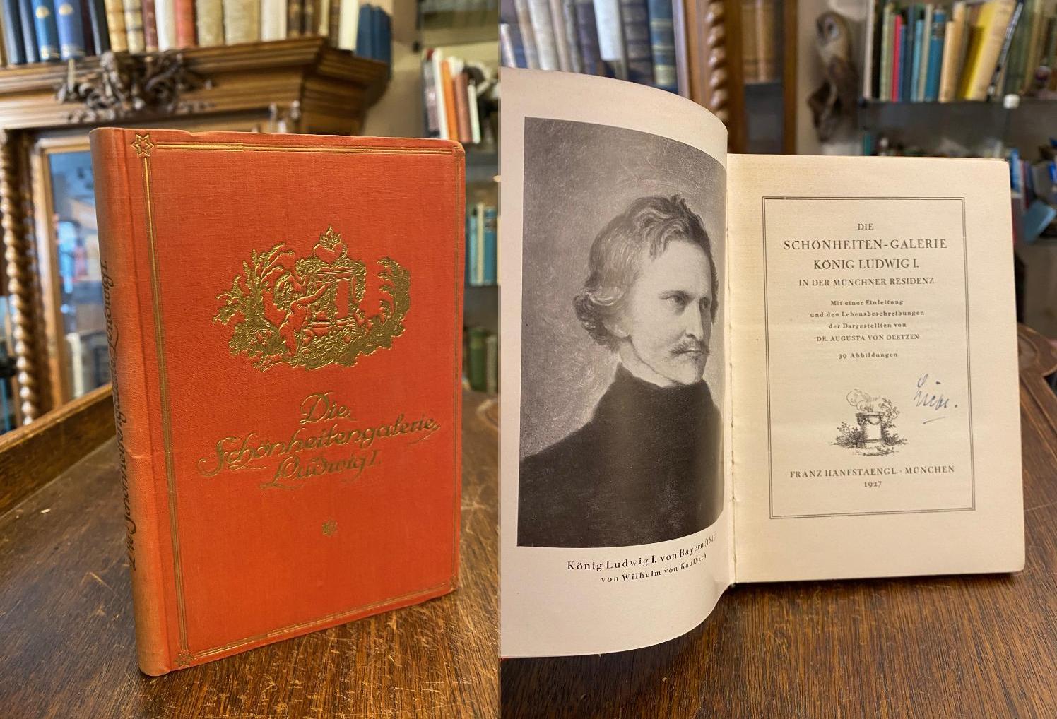 Oertzen, Augusta von: Die Schönheiten-Galerie König Ludwig I. in der Münchner Residenz. Mit einer Einleitung und den Lebensbeschreibungenn der Dargestellten. München, Franz Hanfstaengl, 1927. kl8° (17x12), 130 S., 3 Bl., mit 39 Abb., roter Oln mit goldPrägung, KopfgoldSchnitt, Rücken aufgehellt, vordVorsatz entfernt, kleiner Name auf Titelblatt, gutes Exemplar,