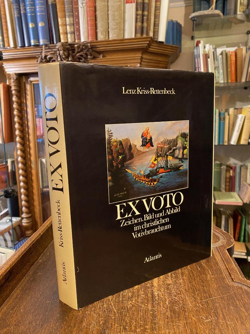 Kriss-Rettenbeck, Lenz: Ex Voto : Zeichen, Bild und Abbild im christlichen Votivbrauchtum. Zürich; Freiburg, Atlantis Verlag, (1972). 4° (29x23), 420 S., mit 209 teils farb Text- und TafelAbb., Oln mit ill OU, Umschlag berieben, Papier etwas gebräunt, ordentliches etwas gealtertes Exemplar, Kriss-Rettenbeck, Landeskonservator am Bayerischen Nationalmuseum in München ist der international anerkannte Spezialist des abendländischen Votiv-und Weihebrauchtums.–