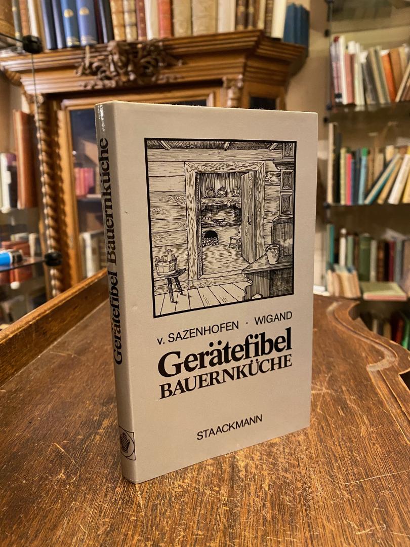 Sazenhofen, Carl Josef von (Text) / Wigand, Horst D. (Ill): Gerätefibel Bauernküche. 1. Aufl. (1.-4. Tsd.), München, L. Staackmann Verlag, 1979. 8° (19x12), 143 S., mit zahlr. Illustrationen, Oln mit ill OU, Vorsatz mit schwahem Fleckchen, 2 Farbmarkierungen, sonst gutes Exemplar,