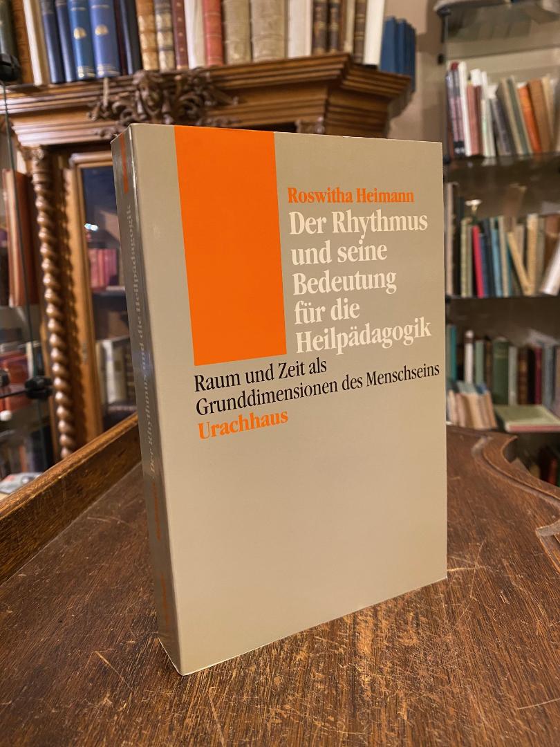 Heimann, Roswitha: Der Rhythmus und seine Bedeutung für die Heilpädagogik : Raum und Zeit als Grunddimensionen des Menschseins. Stuttgart, Verlag Urachhaus : Johannes M. Mayer, 1989. 8° (21x14), 428 S., OKart (Brosch), Einband etwas lichtverfärbt, nahezu ungelesen, schönes gepflegtes Exemplar, Der Begriff des Rhythmus ist heute in allen Wissenschaftsbereichen anerkannt. Von besonderer Wichtigkeit ist jedoch die Klärung der Bedeutung des Rhythmus in bezug auf den Menschen, insbesondere seine Handhabung in den Bereichen der Pädagogik und der Heilpädagogik. Dies setzt ein Verstehen des Rhythmus überhaupt voraus. Dabei kann es weniger um eine bloße definitorische Klärung des Begriffs gehen als vielmehr darum, das Wesen des Rhythmus besser kennenzulernen und seine Beziehung zu Welt und Mensch zu untersuchen.