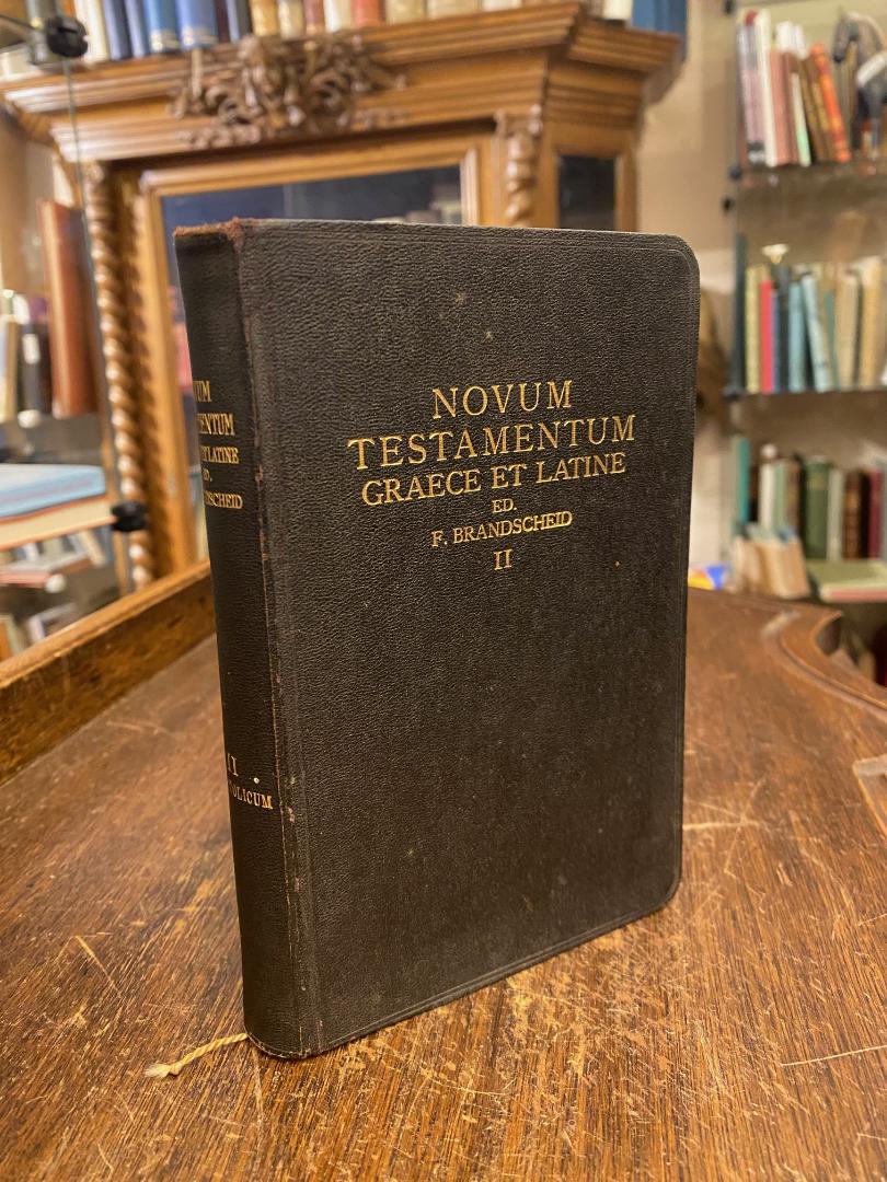 Bibel. – NT. – Brandscheid, Friedrich (ed): Novum Testamentum Graece et Latine : Pars Altera: Apostolicum. Textum Graecum recensuit, Latinum ex Vulgata versione Clementina adiunxit, breves capitulorum inscriptiones et parallelos uberiores addidit Fridericus Brandscheid. tertia editio critica recognita, Band 2 von 2, Freiburg, Herder, 1907. kl8° (16x11), VIII, 803 S., flex schwarzer Oln gewachst mit goldTitel, SchmuckVorsätze, sauber und wohlerhalten, griechisch-lateinischer Paralleltext.–