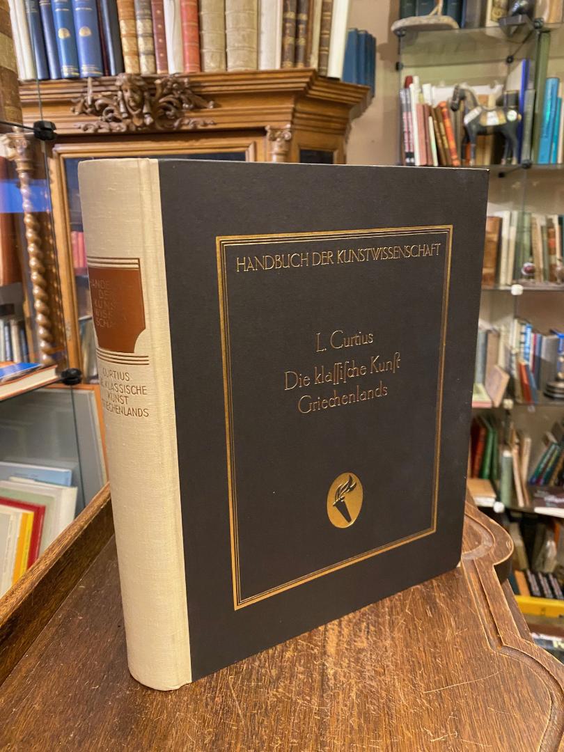 Curtius, Ludwig (Direktor des Deutschen Archöologisches Institut in Rom): Die Antike Kunst : Die Klassische Kunst Griechenlands. Potsdam, Akademische Verlagsanstalt Athenaion, (1938). 4° (29x23), 466 S., mit 604 TextAbb. und 36 montierte Farbtafeln, OHln mit goldTitel, kaum gelesen, sauber und wohlerhalten, [= Handbuch der Kunstwissenschaft : begründet von Fritz Burger herausgegeben von A. E. Brinckmann],