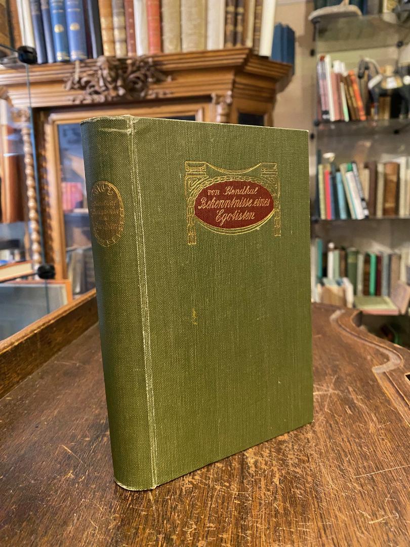 Stendhal [i.e. Marie-Henri Beyle] (1783-1842). – Schurig, Arthur (Hrsg): Bekenntnisse eines Egotisten : Selbstbildnisse Beyles aus seinen Briefen, Tagebüchern und autobiographischen Fragmenten. Ausgewählt, übertragen und eingeleitet von Arthur Schurig. Jena, Verlag Eugen Diederichs, 1905. 8° (18x12), 293 S., 1 Bl., mit Porträt Stendhals, grüner Oln gewachst mit goldPrägung, dreiseitiger Rotschnitt, SchmuckVorsätze, Name verso Vorsatz, kaum gelesen, gutes Exemplar, [= Stendhal Ausgewählte Werke; 5 : herausgegeben von Oppeln-Bronikoswki], Ce volume faisant partie (vol II de deux) d’une nouvelle edition de ‚Oeuvres intimes de Stendhal‘.–
