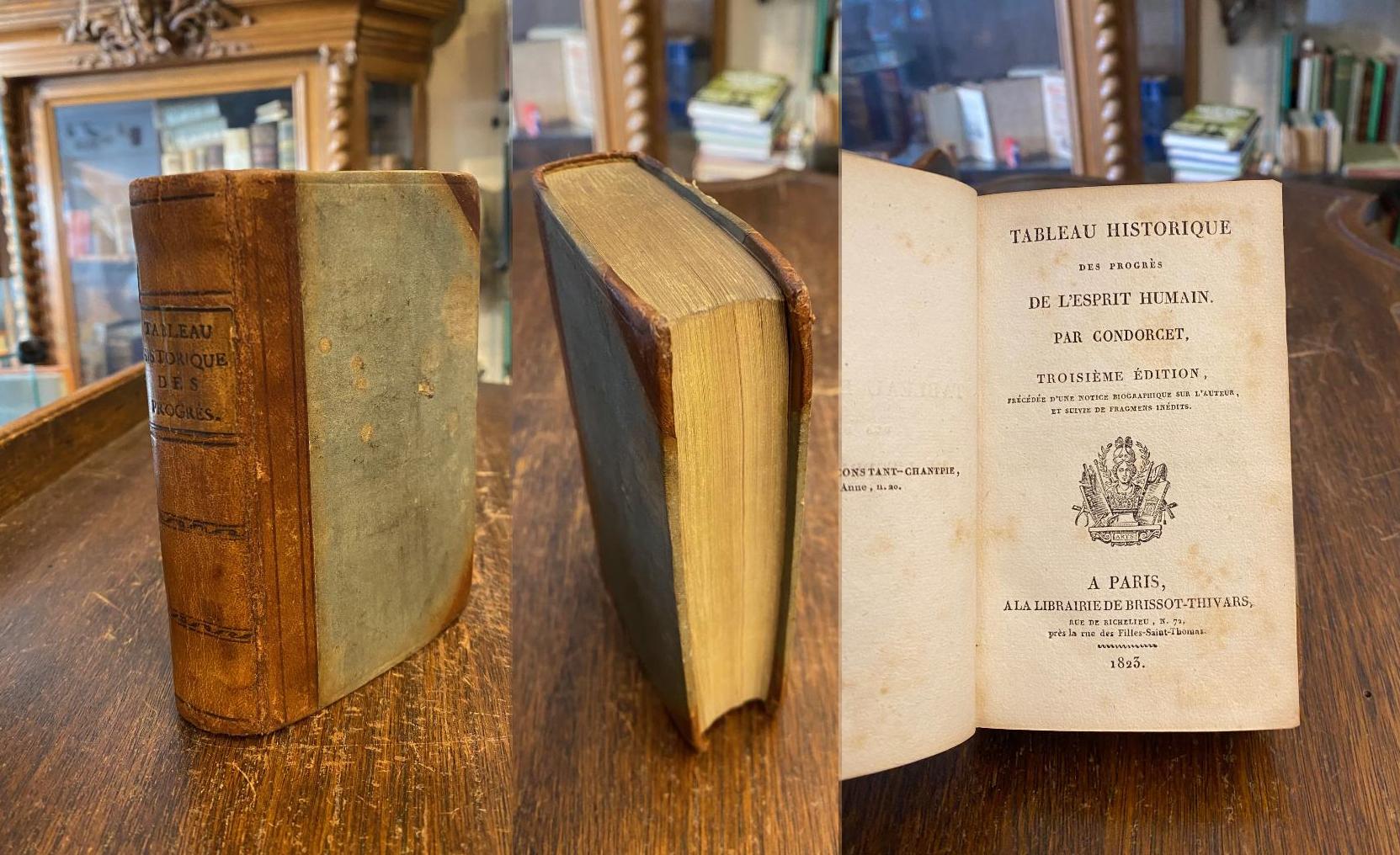 Condorcet, Jean Antoin Nicolas (1743-1794): Tableau Historique des Progres de l’Esprit Humain : Precdede d’une Notice biographique sur l’Autheur ete suivie de Fragments inedits. 3. ed., Paris, Librairie de Brissot-Thivars, 1823. 12° (13x9), XXIX, 466, (2) p., reliure d’epoche demi cuir, legerement jauni, bon etat rigide et propre,