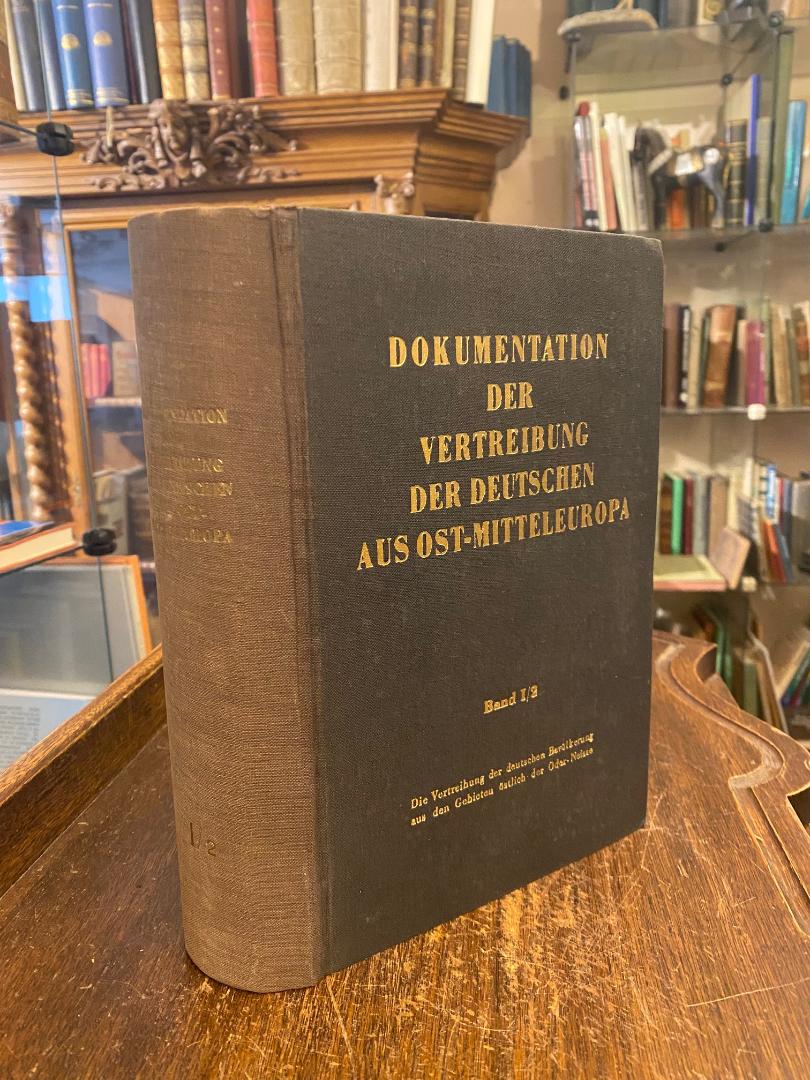 Bundesministerium für Vertriebene, Flüchtlinge und Kriegsgeschädigte (Hrsg) /Schieder, Theodor (Bearb): Dokumentation der Vertreibung der Deutschen aus Ost-Mitteleuropa : Band I/2: Die Vertreibung der deutschen Bevölkerung aus den Gebieten östlich der Oder-Neisse. Bearbeitet von Theodor Schieder in Verbindung mit Adolf Diestelkamp, Rudolf Laun, Peter Rassow und Hans Rothfels. Bonn, Bundesministerium für Vertriebene, [1954]. gr8° (24x16), XVI, 896 S., schwarzer Oln mit goldPrägung, Rücken aufgehellt, mit vereinzelten kleinen Markierungen, gutes Exemplar, [= Dokumentation der Vertreibung der Deutschen aus Ost-Mitteleuropa; Band I/2 : in Verbindung mit Adolf Diestelkamp, Rudolf Laun, Peter Rassow und Hans Rothfels bearbeitet von Theodor Schieder],