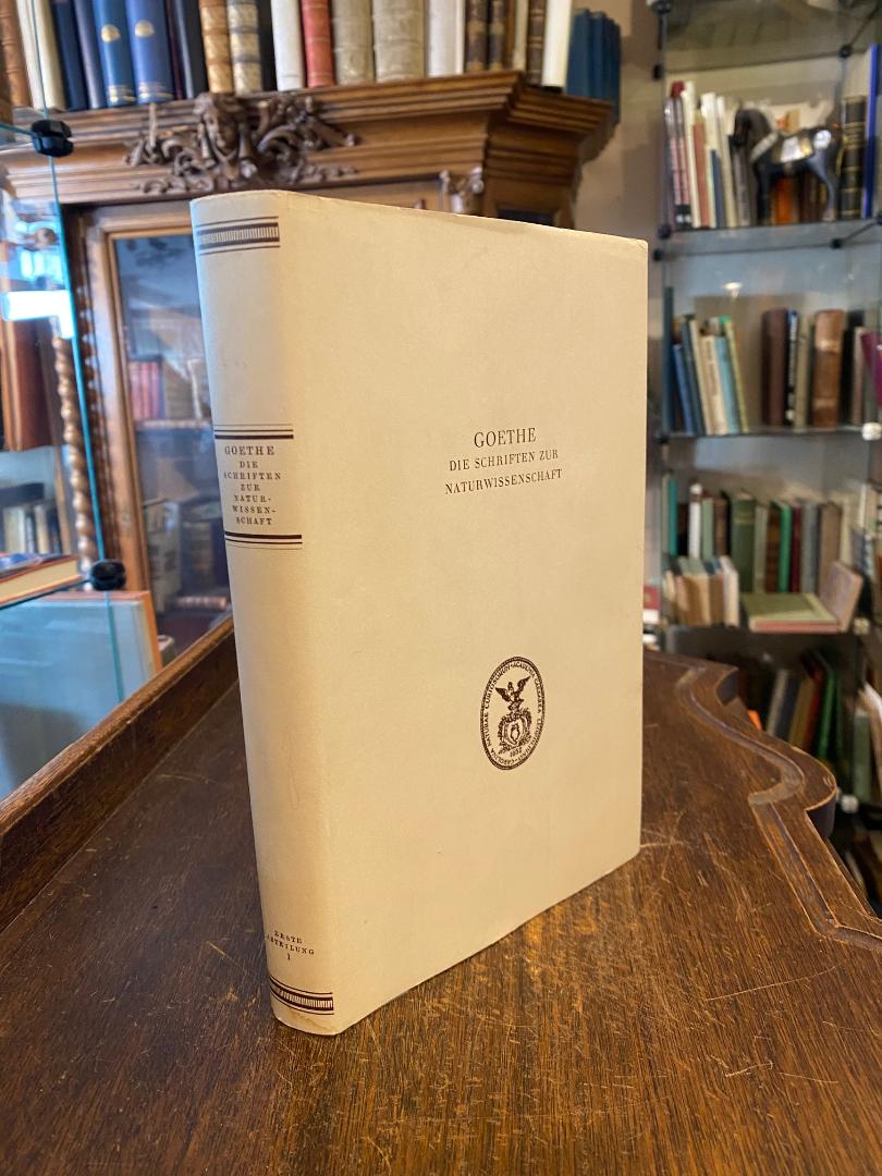 Goethe, Johann Wolfgang von (1749-1832). – Leopoldina-Ausgabe. – Schmid, Günther (Hrsg): Goethe : Leopoldina-Ausgabe : I. Abteilung (Texte); Band 1: Schriften zur Geologie und Mineralogie 1770 – 1810. Band 1 von 11, Weimar, Hermann Böhlau’s Nachf, 1989. gr8° (24x16), VII, 388 S., mit 20 Tafeln, heller Oln mit OU, Umschlag alt unterlegt, gelegentlich minimal fleckig, gutes Exemplar, [= Goethe – Die Schriften zur Naturwissenschaft; I. Abteilung (Texte); Band 1 : Vollständige mit Erläuterungen versehene Ausgabe im Auftrage der Deutschen Akademie der Naturforscher Leopoldina : begründet von K. Lothar Wolf und Wilhelm Troll : herausgegeben von Dorothea Kuhn und Wolf von Engelhardt], [Hagen, Handbuch der Editionen S.187, 2 Abtl. I, 1].–