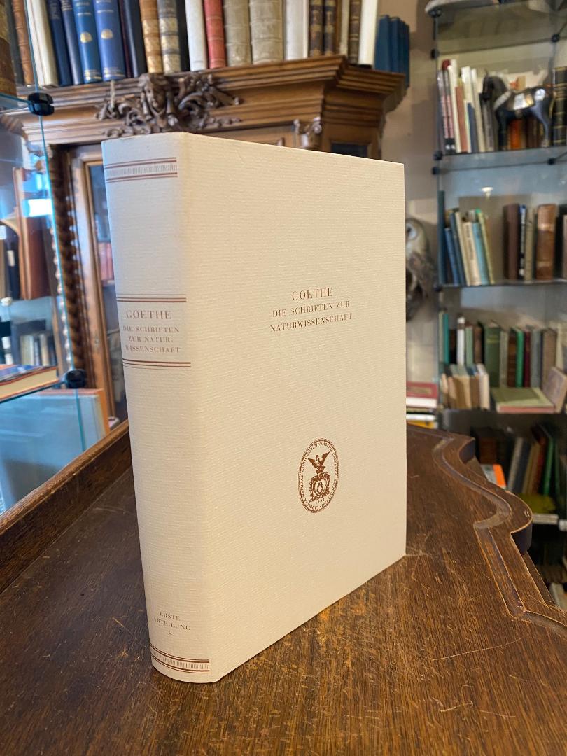 Goethe, Johann Wolfgang von (1749-1832). – Leopoldina-Ausgabe. – Schmid, Günther (Hrsg): Goethe : Leopoldina-Ausgabe : I. Abteilung (Texte); Band 2: Schriften zur Geologie und Mineralogie 1812 – 1832. Band 2 von 11, Weimar, Hermann Böhlau’s Nachf, 1949. gr8° (24x16), 438 S., mit 34 Tafeln, heller Oln mit OU, Papier gebräunt, ohne Gebrauchsspuren, wohl ungelesen, [= Goethe – Die Schriften zur Naturwissenschaft; I. Abteilung (Texte); Band 2 : Vollständige mit Erläuterungen versehene Ausgabe im Auftrage der Deutschen Akademie der Naturforscher Leopoldina : begründet von K. Lothar Wolf und Wilhelm Troll : herausgegeben von Dorothea Kuhn und Wolf von Engelhardt], [Hagen, Handbuch der Editionen S.187, 2 Abtl. I, 2].–