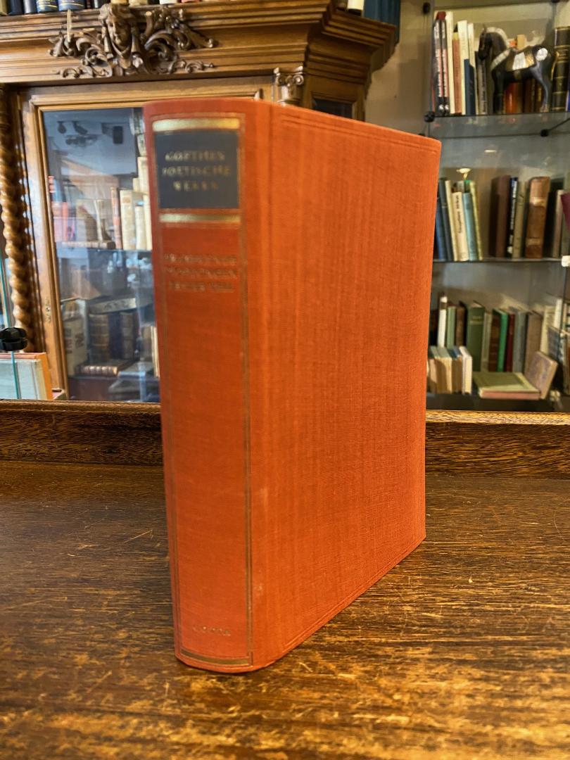 Goethe, Johann Wolfgang von (1749-1832). – Cotta Gesamtausgabe Poetische Werke und Schriften : Band 6 – Leinen. – Goethe : Erzählende Dichtungen : Erster Teil. 1.-5 Tsd., Stuttgart, J. G. Cotta’sche Buchhhandlung Nachf, 1950. 8° (18x12), 1229 S., 1 Bl., Dünndruckpapier, roter Oln mit goldRTitel blaues Feld, Rückenfilette, kaum gelesen, fest sauber und gepflegt, [= Goethe Gesamtausgabe : Poetische Werke und Schriften in 22 Bänden; Abteilung I (Poetische Werke), Band 6 – Ganzleinen],