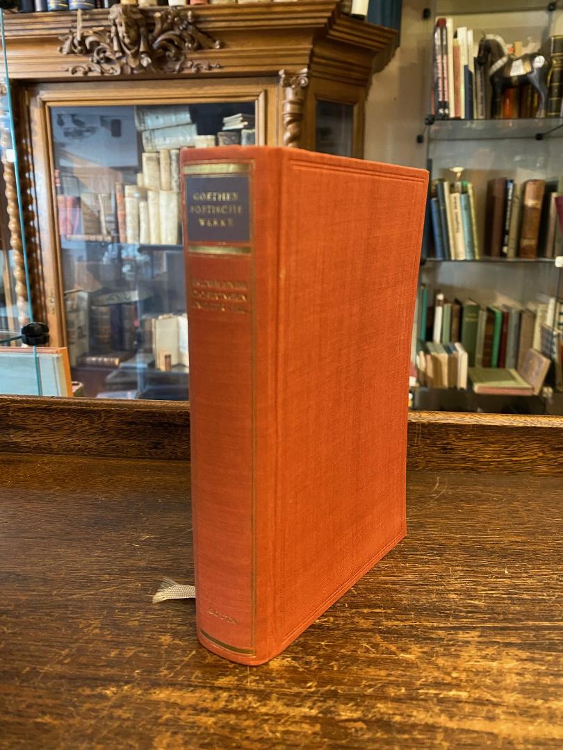 Goethe, Johann Wolfgang von (1749-1832). – Cotta Gesamtausgabe Poetische Werke und Schriften : Band 7 – Leinen. – Goethe : Erzählende Dichtungen : Zweiter Teil. 1.-5 Tsd., Stuttgart, J. G. Cotta’sche Buchhhandlung Nachf, 1951. 8° (18x12), 1310 S., 1 Bl., Dünndruckpapier, roter Oln mit goldRTitel blaues Feld, Rückenfilette, Vorsätze schwach leimschattig, kaum gelesen, fest sauber und gepflegt, [= Goethe Gesamtausgabe : Poetische Werke und Schriften in 22 Bänden; Abteilung I (Poetische Werke), Band 7 – Ganzleinen],