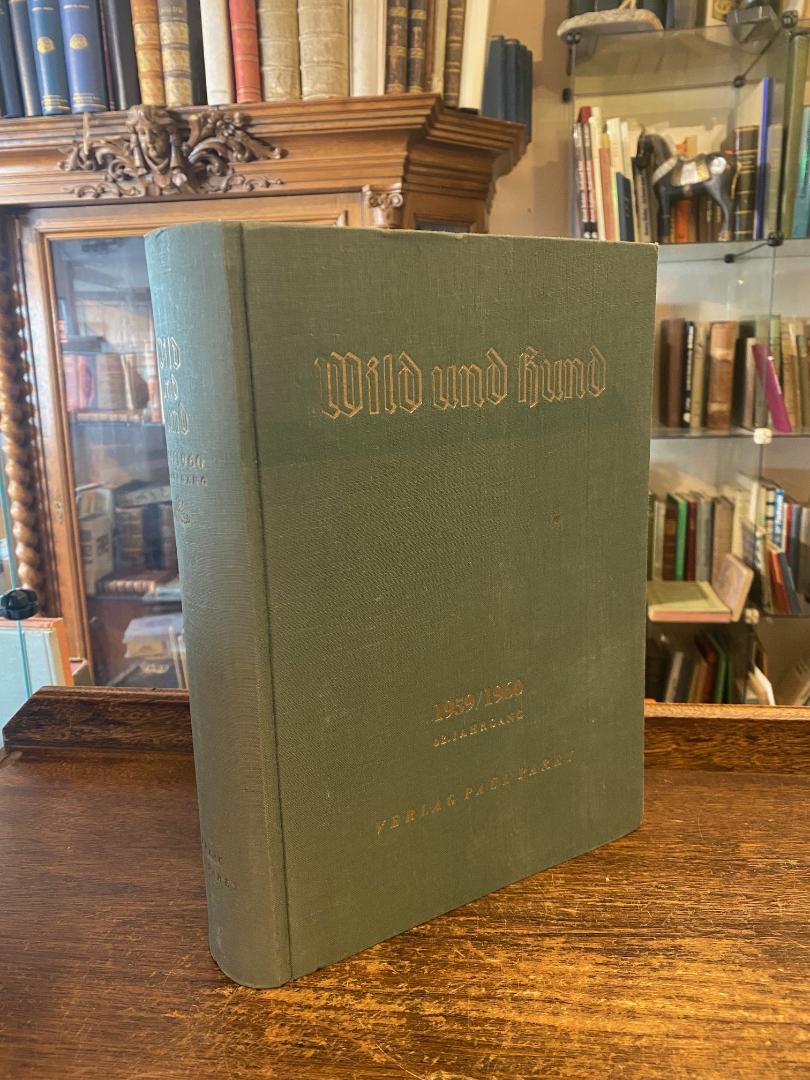 Wild und Hund 1959/1960 – Jahrgang 62 : Heft 1 (April 1959) – Heft 26 (März 1960) : Vereinigt mit St.Hubertus – Der Heger Jagd und Hege. Hamburg-Berlin, Verlag Paul Parey, 1959-1960. 4° (29x20), 11 S. (Register), 560 (Innenteil), 864 (Aussenteil), mit 586 (davon 78 farb) Abb., grüner Oln mit goldTitel, fest sauber und gepflegt, durch Register erschlossen.– kompletter Jahrgang mit 26 Heften.– illustrierte Original-Umschläge mit eingebunden.– Innenteil- und Aussenteil nacheinander gebunden.–