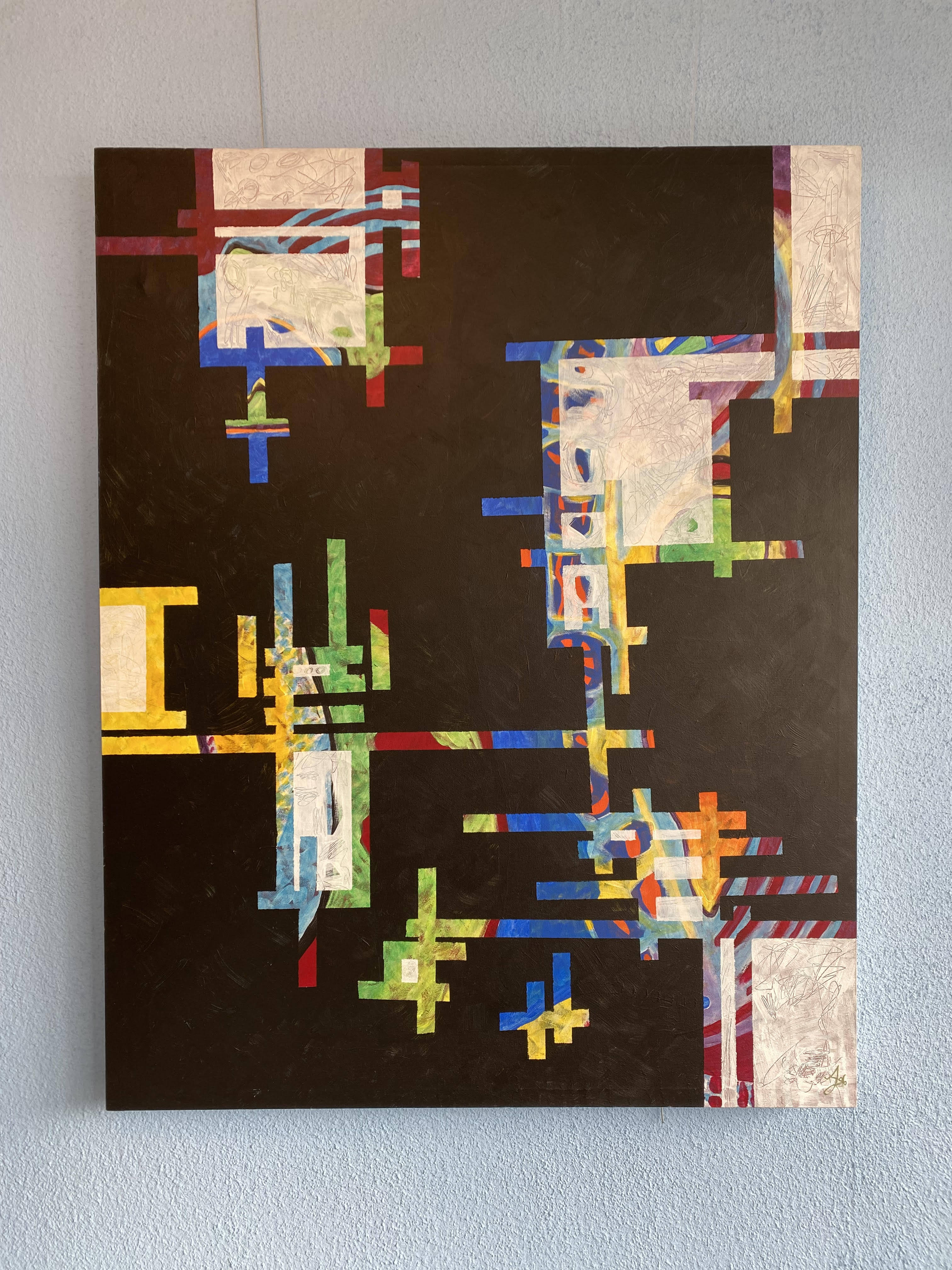 Janle, Annette (1960 Stuttgart – 2016 Tübingen): ‚o. T.‘ : unten rechts signiert, datiert : Acryl auf Leinwand auf Holzrahmen gespannt : Tübingen, 1996. 100 x 79 cm, 1980–1984 Studium Sozialpädagogik, 1994–1996 Kunstseminar Freie Hochschule Metzingen, Offener Studienbereich.– seit 1996 freischaffende Künstlerin.– seit 2002 freie Lehrtätigkeit.– 2014 Artist in Residence Hrisey/Island.– Mitglied im Verband Bildender Künstler Württemberg (VBKW) und im Künstlerbund Tübingen.– Atelier in Tübingen.– frühzeitiger Tod 2016.–