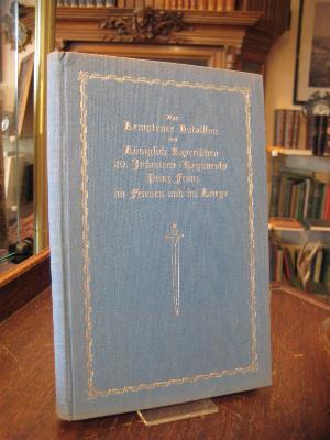 Hoffmann, [Erich]: Das Kemptener Bataillon des Königlich Bayerischen 20. Infanterie-Regiments Prinz Franz im Frieden und im Krieg. Kempten, Verlag der Josef Kösel’schen Buchhandlung, 1928. gr8° (23x15), (V), 227 S., mit zahlr. fotograf Aufnahmen im Text, Anhang: Ehrenblätter und Gefechtsdaten, KartenTasche mit 1 mehrfach gefalteten Kartenbeilage, 1 Skizze zur Gefechtslage, (so komplett), blauer Oln mit silberPräg, minimal angestaubt, gutes Exemplar, fest und sauber,