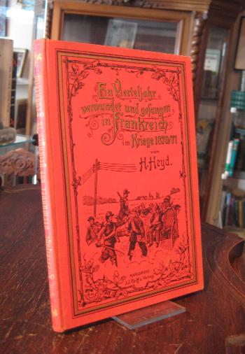 Heyd, [Heinrich]: Ein Vierteljahr verwundet und gefangen in Frankreich : Erlebnisse eines Grenadiers im Krieg 1870/71. Karlsruhe, Verlag von J.J. Reiff, 1901. 8° (20x13), 88 S., 8 S. VA, mit 1 gefalteten Karte, roter Oln mit gepräg DBild und goldR/DPräg, handschriftl RNummer, aInnenspiegel Bleistifteintrag des Militärverein Wittnau, vereinzelt etwas fleckig/fingerfleckig, sehr ordentliches Exemplar, [= Badener im Feldzug 1870/71 : Persönliche Erlebnisse und Erinnerungen; 16], In diesen Kriegsbüchern wird nicht die Geschichte des großen Krieges erzählt, sondern was Einzelne erlebt haben. Es sind badische Soldaten, welche den Feldzug mitgemacht und nun ihre persönlichen Erlebnisse mitteilen. (Der Verlag über die Reihe)