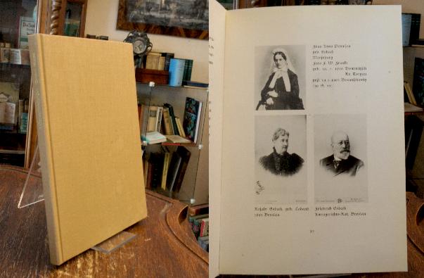Merkel, Gertrud (geb. Esbach 1873-1963): Erinnerungen. (Nürnberg), Privatdruck / Druckhaus Nürnberg (Druck), 1966. 8° (21x15), 94 S., mit zahlr. Porträts, Faksimiles, 1 gefaltete genealogische Tafel, brauner Oln mit goldRTitel ohne OU, vordDeckel etwas fleckig, kleine Familienzueignung auf Zwischentitelblatt, sonst fest sauber und gepflegt, Auflage 50 Exemplare.— posthum herausgegeben vom Sohn der Verfasserin Heinrich G. Merkel (geb. 12. Februar 1900 in Trebnitz/Schlesien).–(Patschkau.– Merseburg.– Breslau.– Ibbenbüren.– Trebnitz)