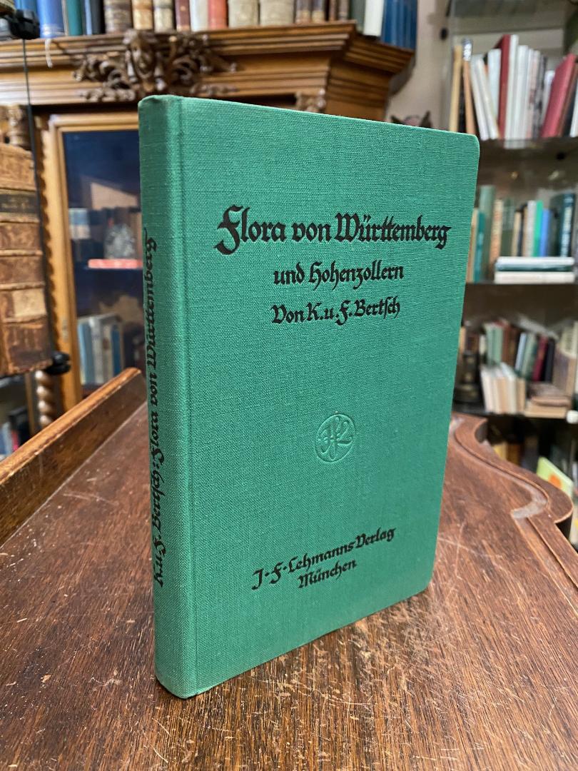 Bertsch, Karl und Franz (Ravensburg): Flora von Württemberg und Hohenzollern. Zum Gebrauch auf Wanderungen, in Schulen und beim Selbstunterricht. [1. Aufl.], München, J.F. Lehmanns Verlag, 1933. 8° (20x13), VIII, 311 S., 4 Bl. VA, mit 1 Übersichtskarte und 55 TextAbb., grüner Oln, Bleistiftwidmung auf Zwischentitelblatt, sonst ohne Gebrauchsspuren, offensichtlich ungenutzt,