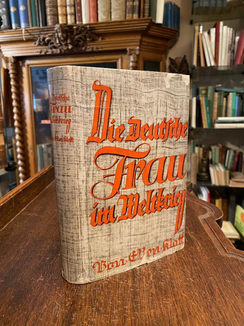 Klatt, Ellen: Die deutsche Frau im Weltkrieg. Minden i. W.; Berlin; Leipzig, Verlag von Weilhelm Köhler, [1934]. 8° (20x14), 296 S., mit Porträt der Verfassin in Schwesterntracht, heller Oln mit OU, Umschlagrand mit säurefrei reparierte Randläsuren, sonst fest sauber und gepflegt, aus der Bibliothek Schloss Altshausen auf Titel mit Wappen-Exlibris Mariae Ducissae [d.i. Maria Immakulata von Österreich Herzogin von Württemberg], die sich sehr für karitative und soziale Belange einsetzte.–