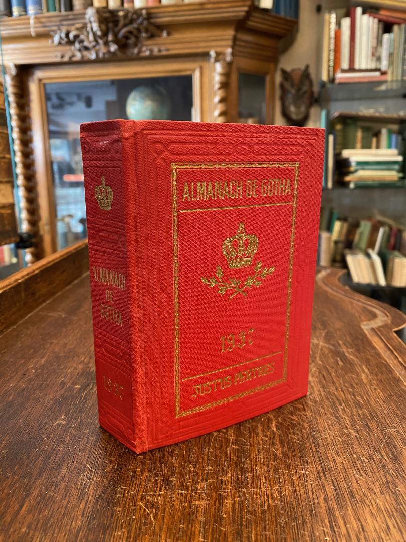 Gotha, Almanach de 1937. – Almanach de Gotha : Annuaire genealogique, diplomatique et statistique 1937. Cent Soixante-quatorzieme annee. Gotha, Justus Perthes, 1937. kl8° (15x11), 1368 p., avec 4 portraits (complet), reliure d’editeur pleine toile rouge, titre dore, tres bon etat, [= Almanache de Gotha; 174 annee (1937)], [Fritsch; 176].–