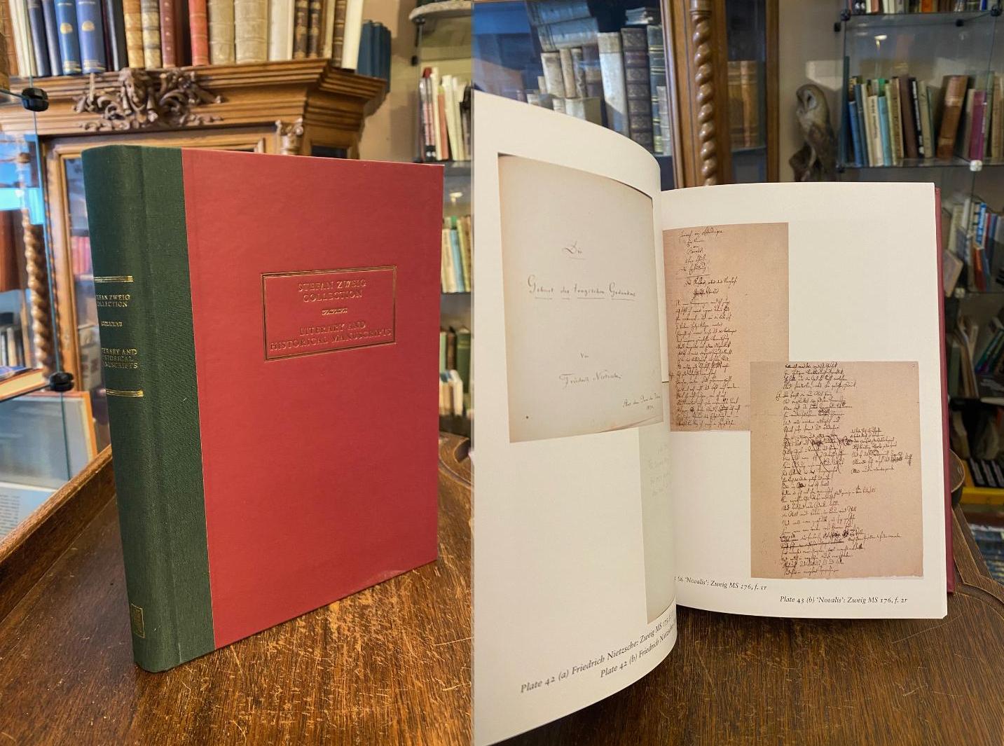 Zweig, Stefan (1881-1942). – The British Library Stefan Zweig Collection: Catalogue of the Literary and Historical Manuscripts. London, The British Library, (2017). 4° (26x20), 147, 47, 8 p., with 74 facsimile plates, publisher’s hardbound half cloth, gilt title, as new, From the age of 16 the Austrian writer Stefan Zweig (1881-1942) was a passionate collector of literary and historical autograph manuscripts, and his collection of unique pieces included poems by Rilke and Baudelaire, drafts by Robespierre, Darwin and Dostoevsky and lecture notes by Nietzsche. The collection was donated to the British Library by Zweigs heirs in 1986, and is catalogued in this volume with full descriptions, commentary and 74 reproductions of manuscript pages.–