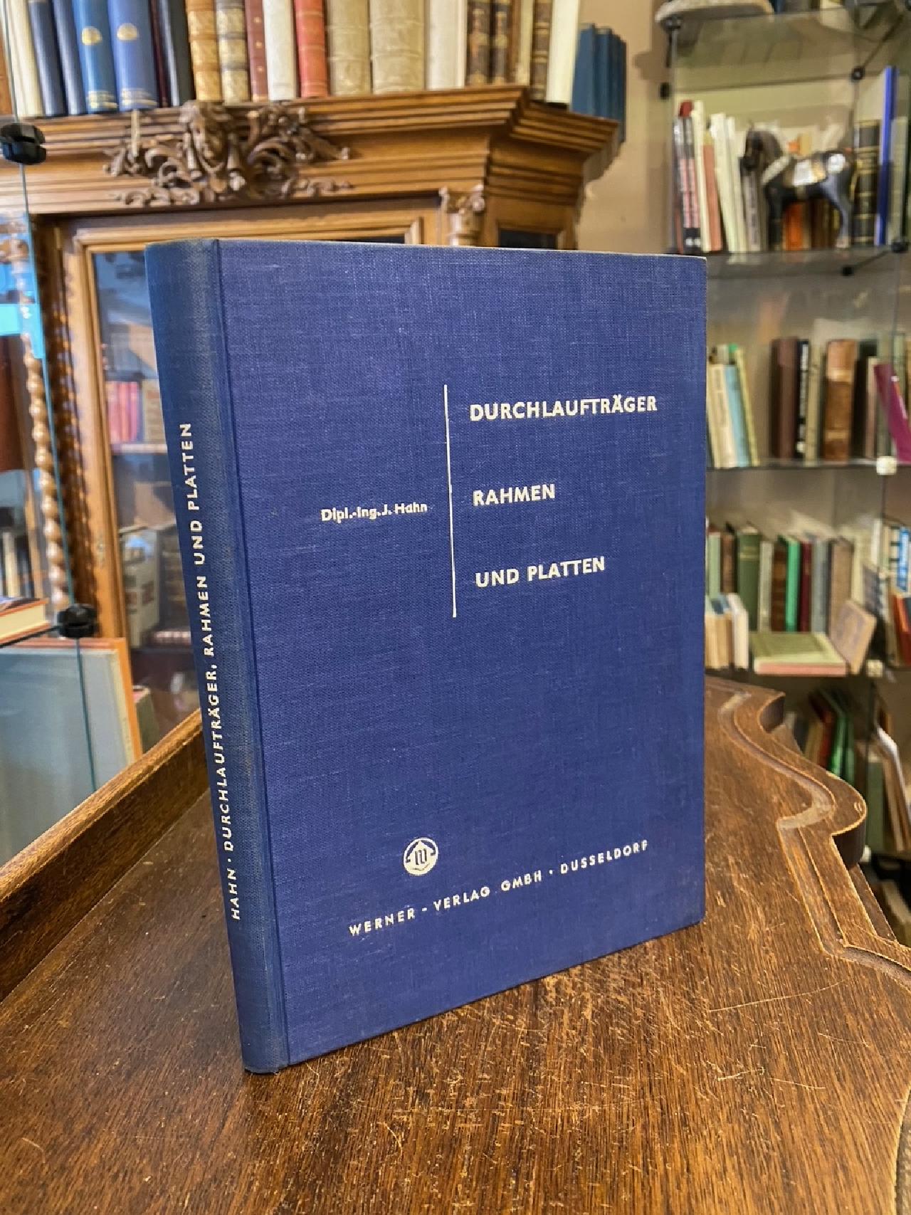 Hahn, [Josef]: Durchlaufträger, Rahmen und Platten. 2., verbesserte Aufl., Düsseldorf, Werner Verlag, 1956. 4° (25x18), 253 S., 1 Bl., mit Errata-Zetteln, blauer Oln mit weisser TitelPrägung, Papier etwas gebräunt, Stempel einer Eisengroßhandlung Ulm auf Vorsatz, gutes Exemplar,